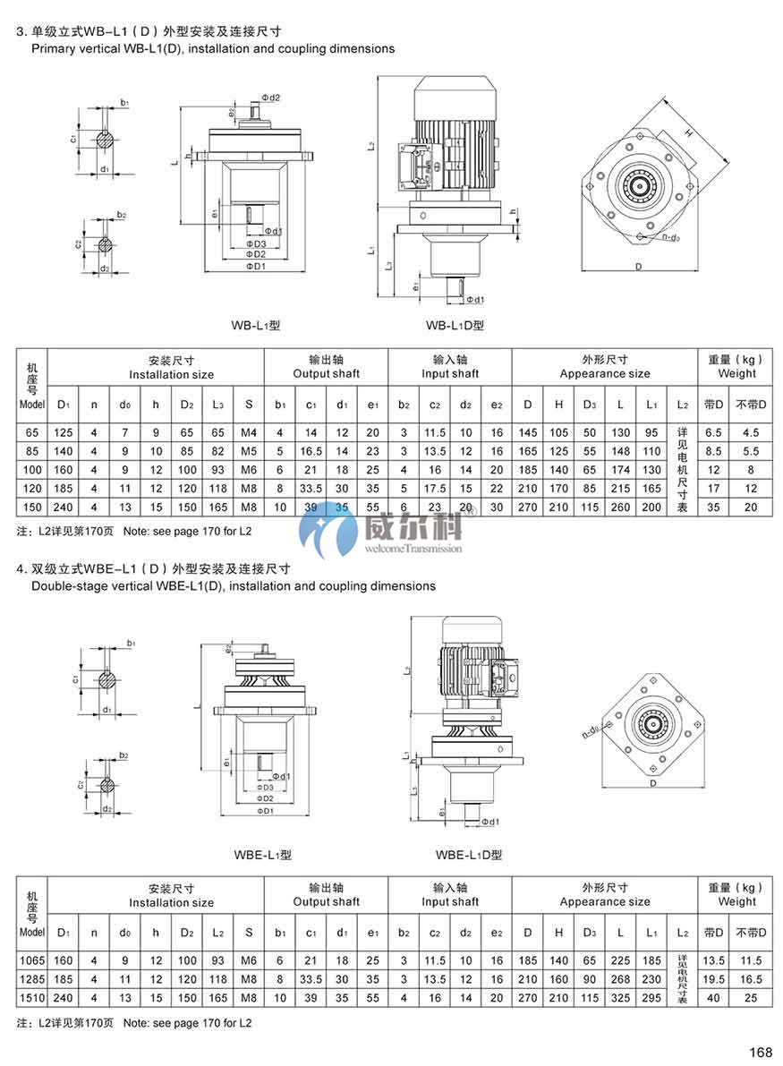 2、雙級減速比機型有WBE1065型、WBE1285、WBE1510型;
