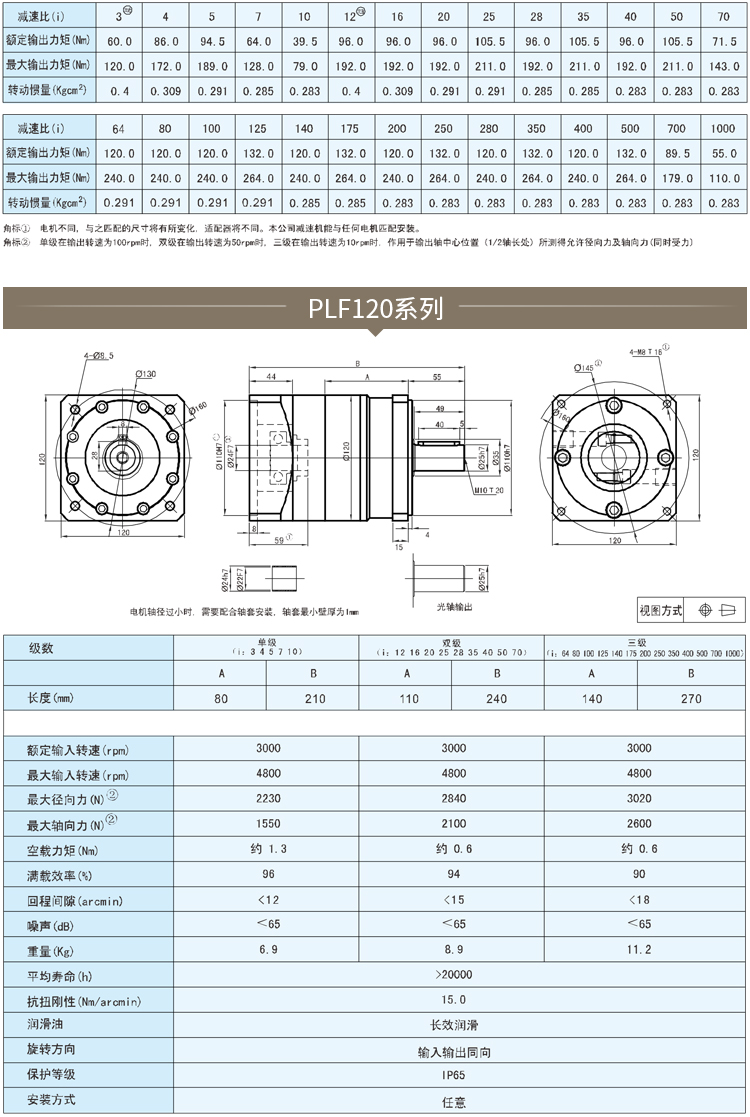 行星減速機(jī)技術(shù)參數(shù):